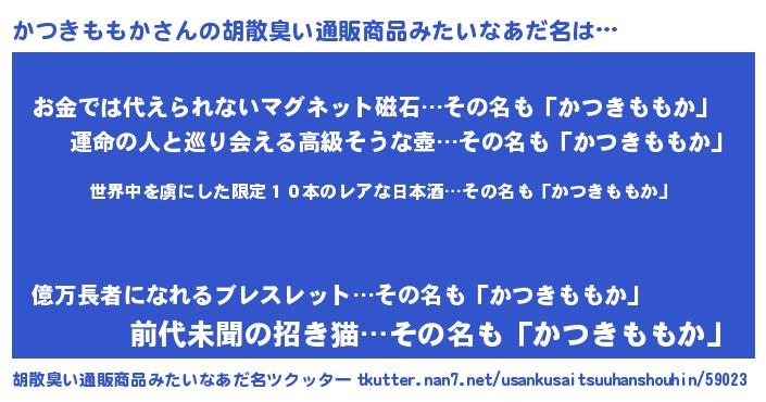 | 意味不明あだ名 | 『住所不定無職かつきももか(43歳)』 |