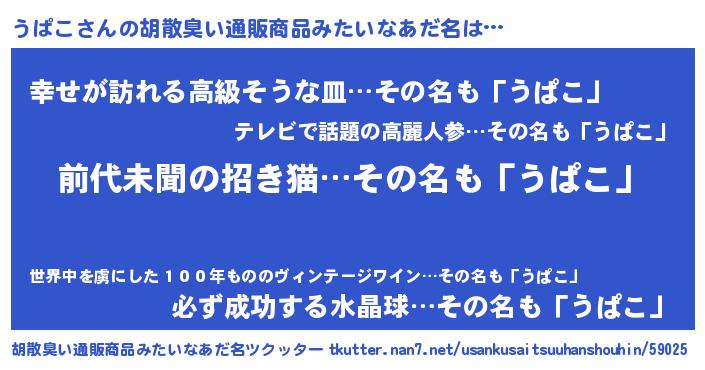 | 意味不明あだ名 | 『永久保存うぱこ』『うぱこフォーエバー』 |