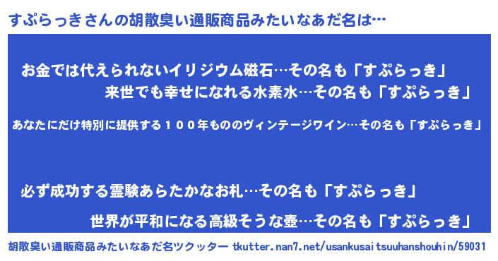 | 伝説のあだ名 | 『救世主となる技術者すぷらっき』 |
