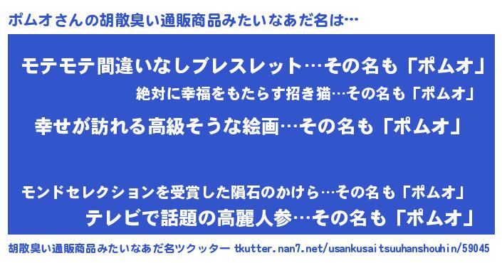 | ヘコむあだ名 | 『つくし』『ポムふぇ~』『ポムお』 |