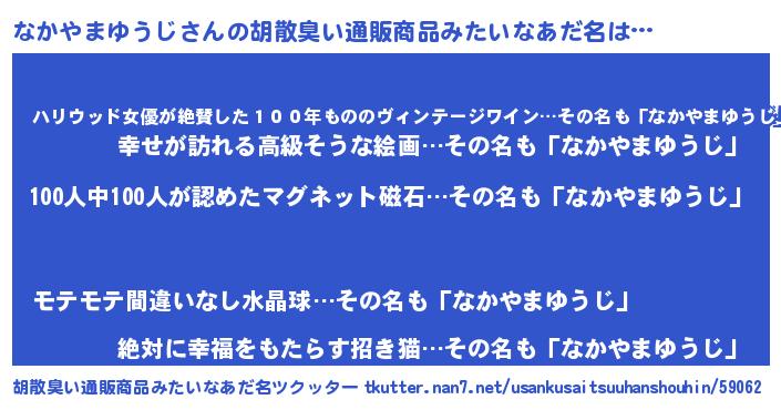 | ヘコむあだ名 | 『なかやまゆうじ(小並感)』『つくし』 |