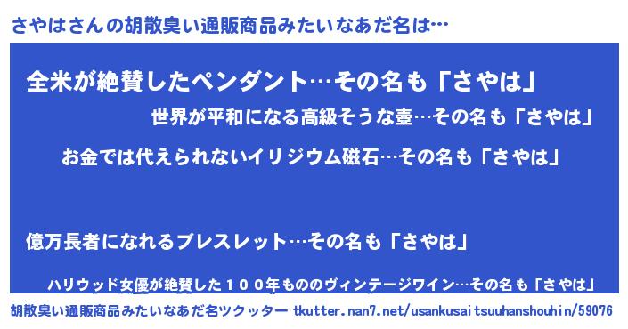 | 女子向けラノベタイトル風あだ名 | 『さやは恋絵巻』『さやは様がみてる』 |