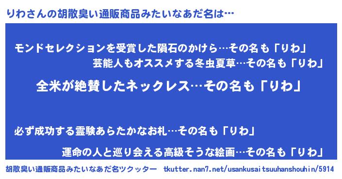 | ヘコむあだ名 | 『りわ太郎』『酢こんぶ』『りわ(爆)』 |