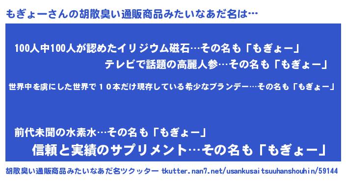 | ヒーロー風カッコイイあだ名 | 『仮面モギダー』『慈愛の使者もぎょー』 |