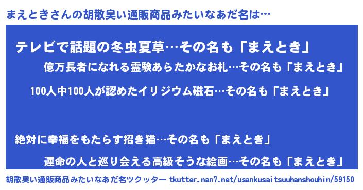 | ヒーロー風カッコイイあだ名 | 『正義の使者まえとき』『ネオマエトキ』 |