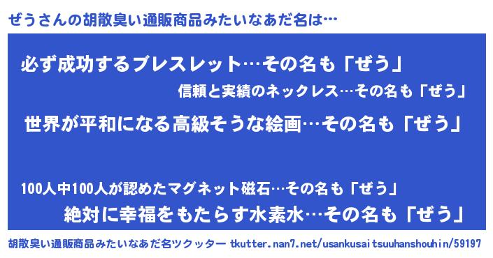 | ヘコむあだ名 | 『豆乳』『ぜうにー』『ぜう(遠い目)』 |
