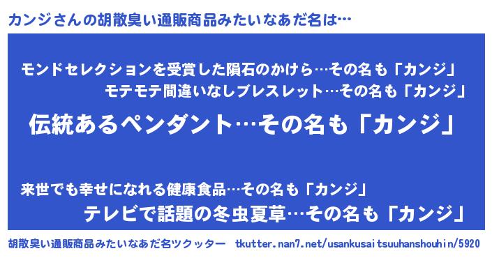| 意味不明あだ名 | 『とにかく怪しいカンジ』『自称カンジ』 |