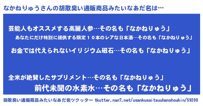 | 欧米人風あだ名 | 『アンジェラ・なかねりゅう』 |