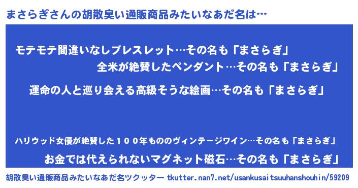 | 男性向けラノベタイトル風あだ名 | 『まさらぎに滅ぼされるだけの簡単なお仕事です』 |