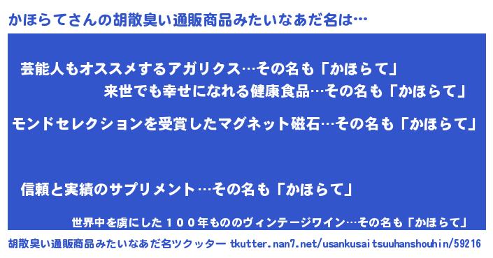 | 肩書あだ名 | 『かほらて助教授』『かほらて総統』 |