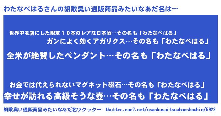 | 意味不明あだ名 | 『とにかく怪しいわたなべはる』 |