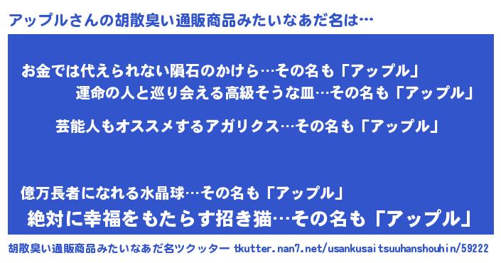 | 意味不明あだ名 | 『自称アップル』『永久保存アップル』 |