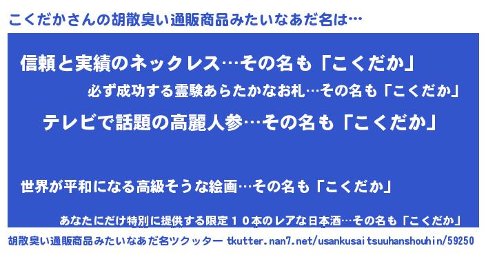 | 恥ずかしいあだ名 | 『コクダカデラックス』『コクリンリン』 |