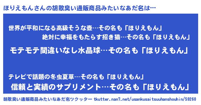 | ヘコむあだ名 | 『ほりふぇ~』『なまこ酢』『ほりを』 |