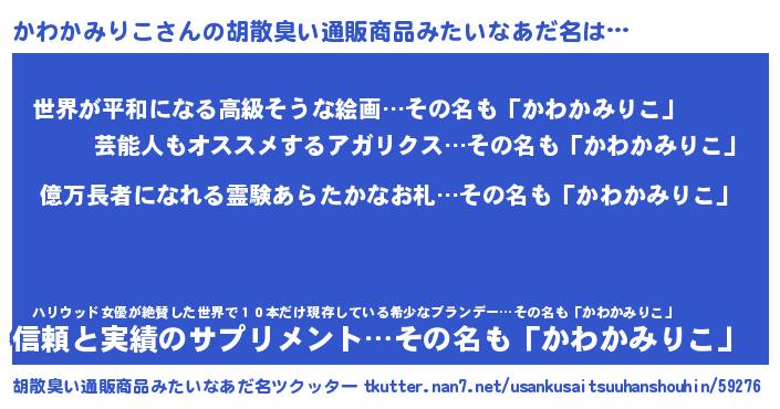 | 伝説のあだ名 | 『封印されしスナイパーかわかみりこ』 |