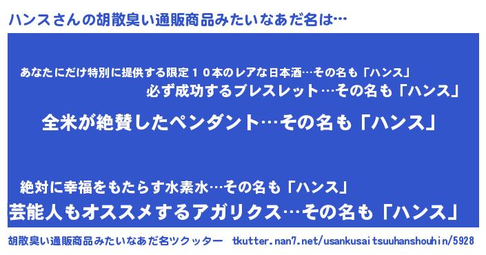 | 欧米人風あだ名 | 『ウサインハンス』『ダレノガレハンス』 |