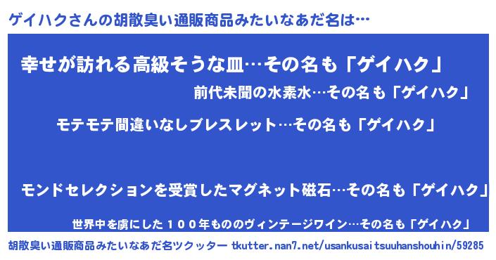 | ヘコむあだ名 | 『ゲイにー』『つくし』『ゲイお』 |