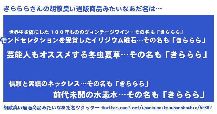 | 意味不明あだ名 | 『自称きららら』『なめこ科きららら属』 |