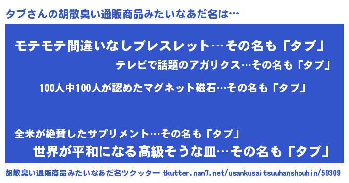 | ヘコむあだ名 | 『タブにー』『豆乳』『タブっぺ』 |