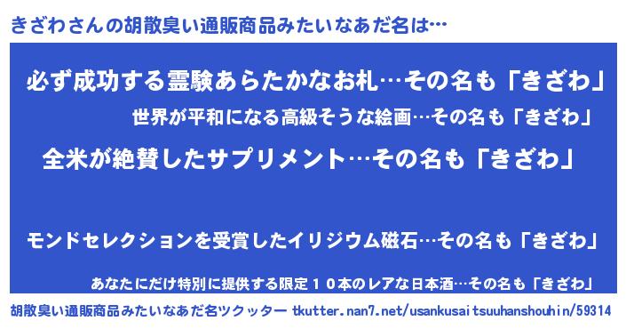 | ヘコむあだ名 | 『きざを』『きざもー』『酢こんぶ』 |