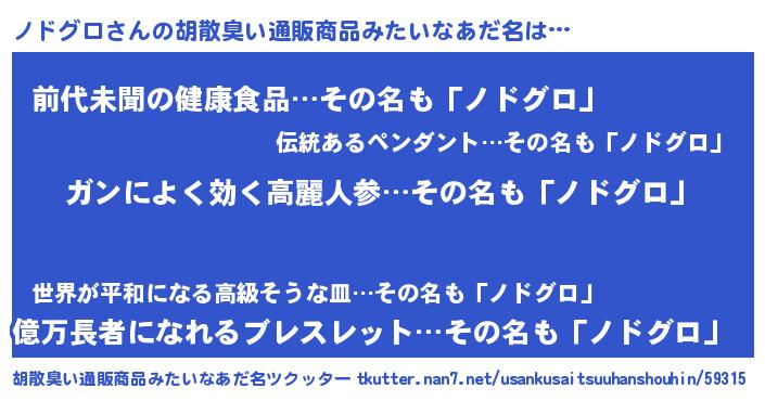 | 意味不明あだ名 | 『自称ノドグロ』『永久保存ノドグロ』 |