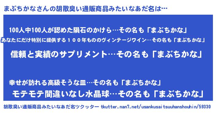 | 意味不明あだ名 | 『とにかく怪しいまぶちかな』 |