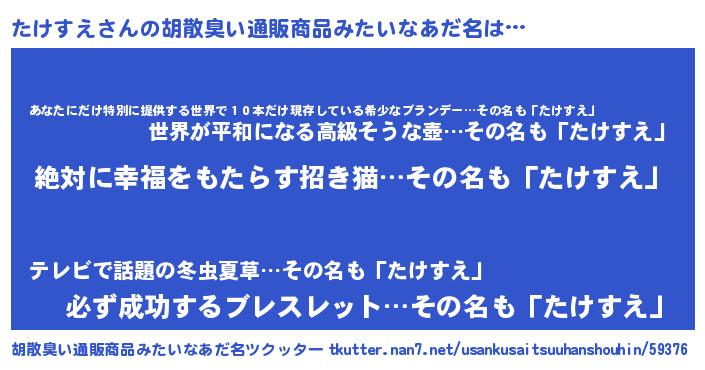 | ヘコむあだ名 | 『たけすえ(笑)』『たけっふぃ~』 |