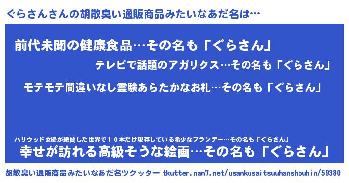 | 意味不明あだ名 | 『ペロリンぐらさん』『永久保存ぐらさん』 |
