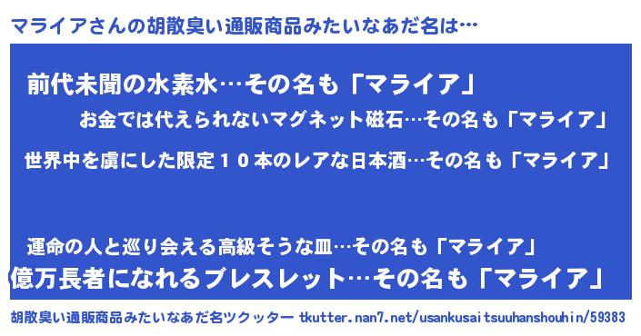 | ヘコむあだ名 | 『マライア(苦笑)』『マラにゅー』 |