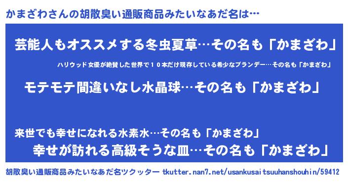 | 意味不明あだ名 | 『ペロリンかまざわ』『自称かまざわ』 |