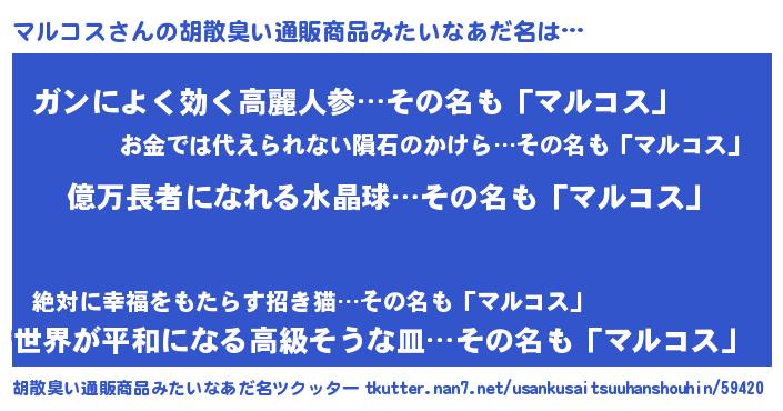 | ヒーロー風カッコイイあだ名 | 『スーパーマルコス』『究極戦士マルコス』 |
