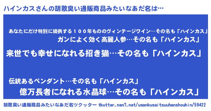| 意味不明あだ名 | 『永久保存ハインカス』『自称ハインカス』 |
