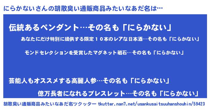 | 男性向けラノベタイトル風あだ名 | 『ノーゲーム・ノーニラカナイ』 |