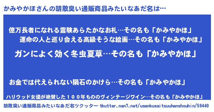 | 意味不明あだ名 | 『自称かみやかほ』『ペロリンかみやかほ』 |