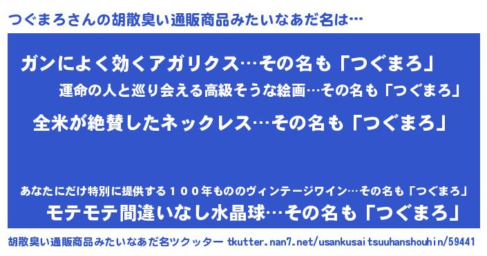 | 男性向けラノベタイトル風あだ名 | 『うちのつぐまろが世界を掌握している!』 |