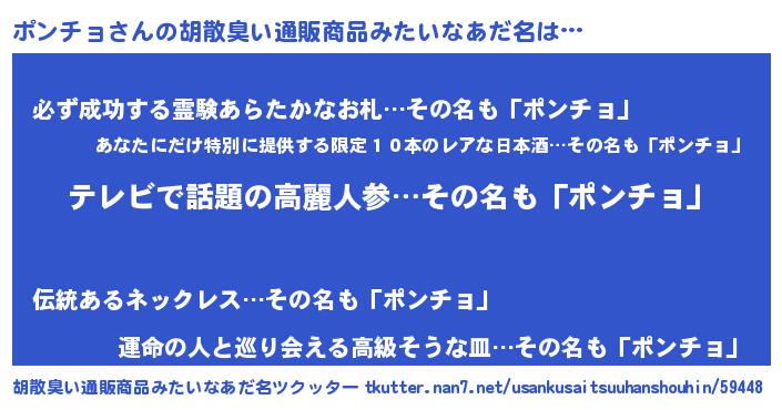 | 意味不明あだ名 | 『自称ポンチョ』『ペロリンポンチョ』 |