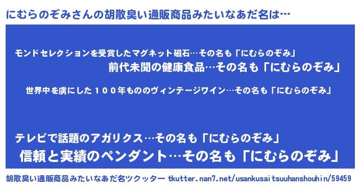 | ヘコむあだ名 | 『にむお』『にむらのぞみ(小並感)』 |