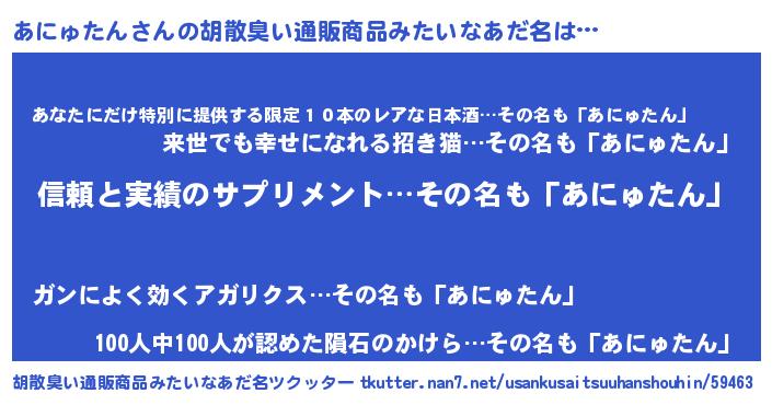 | 意味不明あだ名 | 『とにかく怪しいあにゅたん』 |