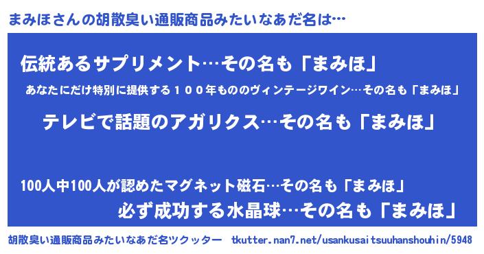 | 男性向けラノベタイトル風あだ名 | 『Re:まみほから始める異世界生活』 |