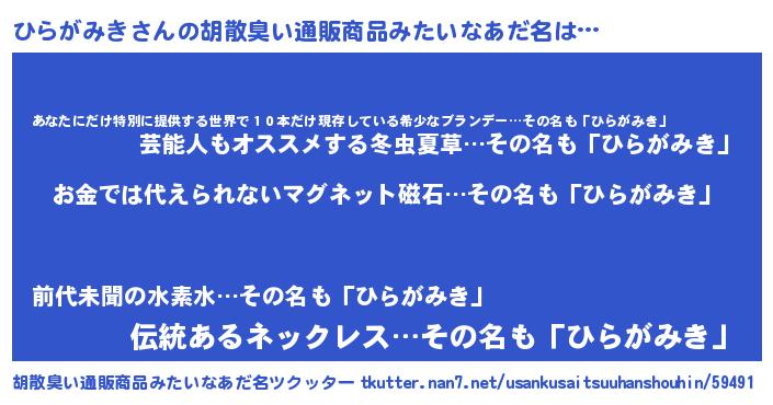 | ヘコむあだ名 | 『ひらを』『ひらがみき(震え声)』 |
