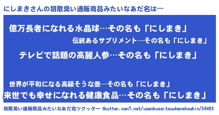 | 料理風あだ名 | 『ヘルシー!にしまきのピリ辛酒蒸し!』 |