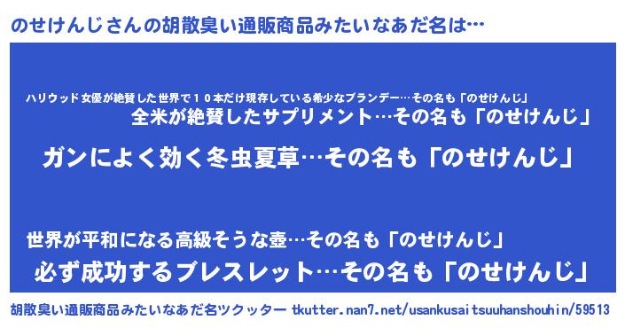 | 意味不明あだ名 | 『自称のせけんじ』『ペロリンのせけんじ』 |