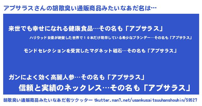 | ヘコむあだ名 | 『アプサラス(笑)』『アプっ子』 |
