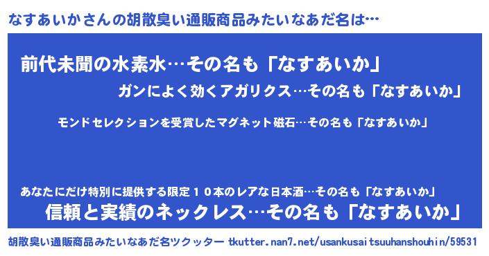 | ヘコむあだ名 | 『なすあいか(笑)』『なすっちょ』 |