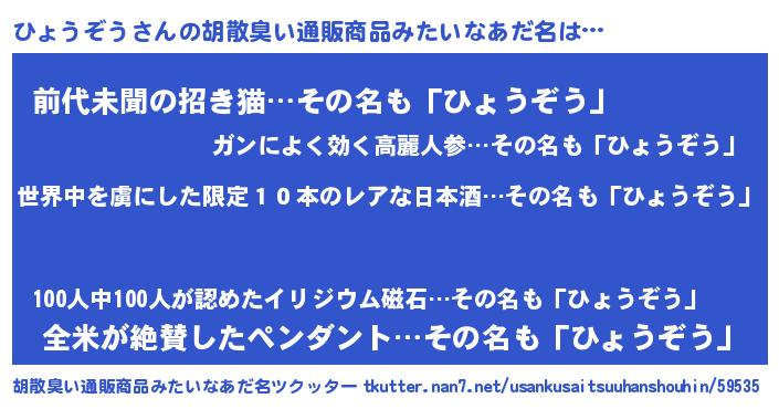 | 意味不明あだ名 | 『住所不定無職ひょうぞう(43歳)』 |