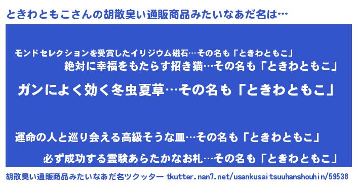| 意味不明あだ名 | 『自称ときわともこ』 |