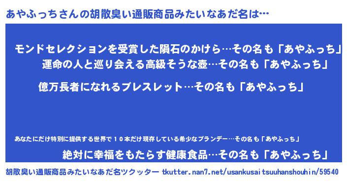 | ヘコむあだ名 | 『あやにー』『あやふっち(震え声)』 |