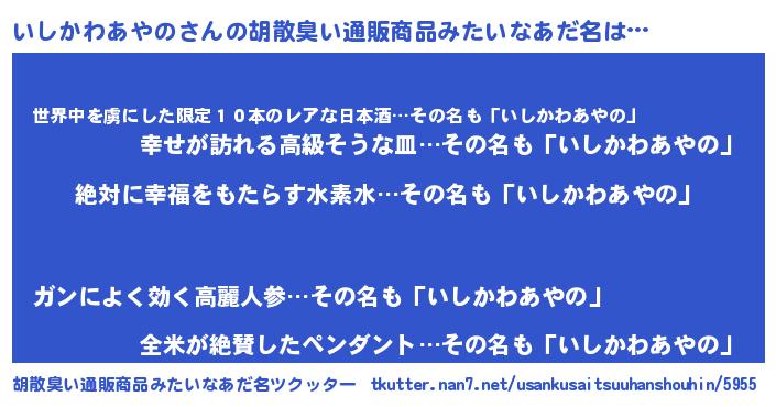 | ヘコむあだ名 | 『いしかわあやの(震え声)』『いし太郎』 |