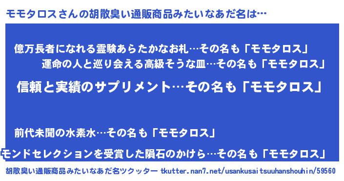 モモタロスさんの胡散臭い通販商品みたいなあだ名をツクッター!
