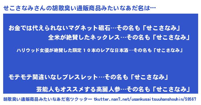 | 欧米人風あだ名 | 『トリンドルせこさなみ』 |